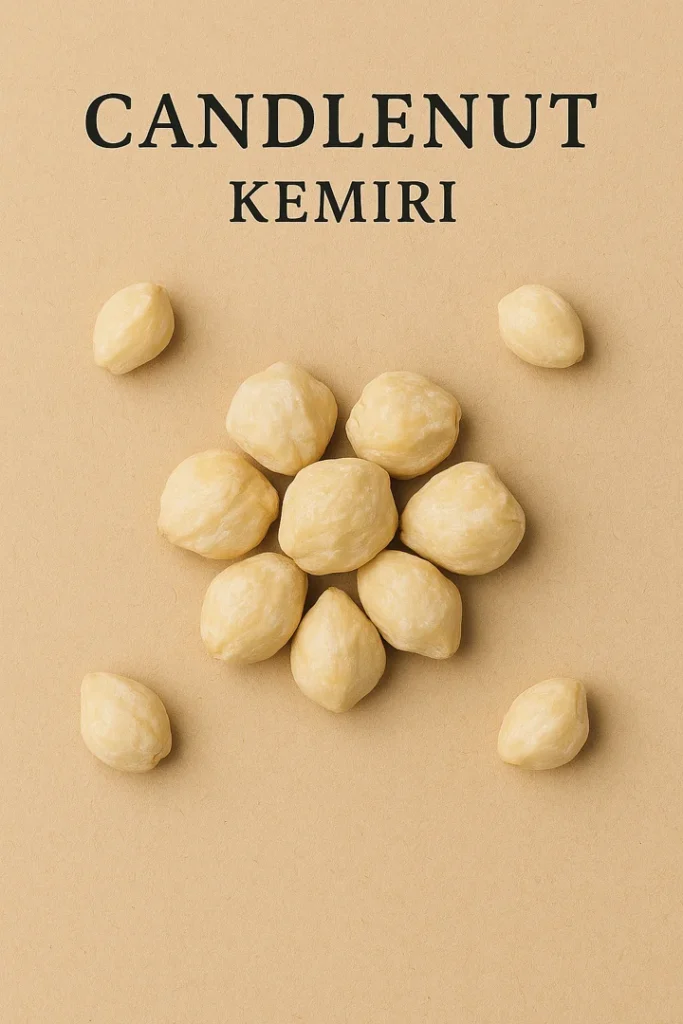 | Kemiri (Candlenut) | Round, ivory-colored nut | Mild, creamy, nutty | Spice pastes, stews, sauces | Adds texture and oiliness, not strong flavor |